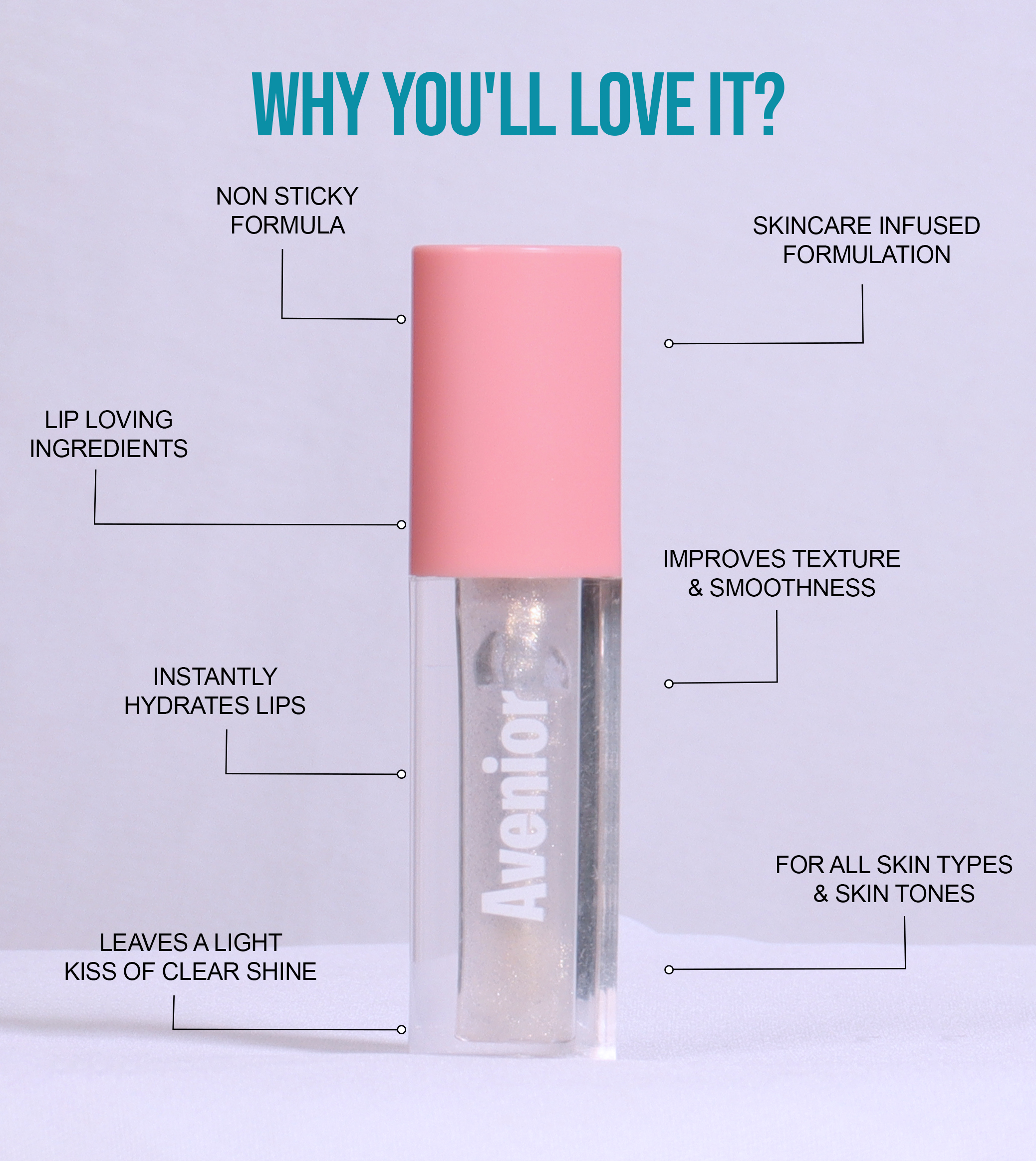 Avenior glosses can be worn alone for a natural look, layered over lipstick for added dimension, or mixed with other lip products for a customized look.